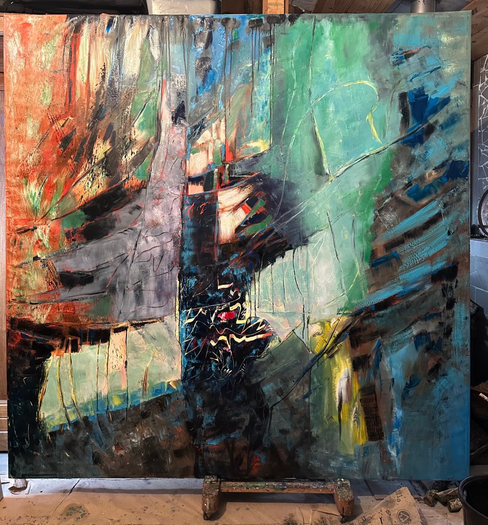 « La pensée du crocodile » 200/200. in situ dans l’atelier. les couleurs sont plus proches de la réalité.