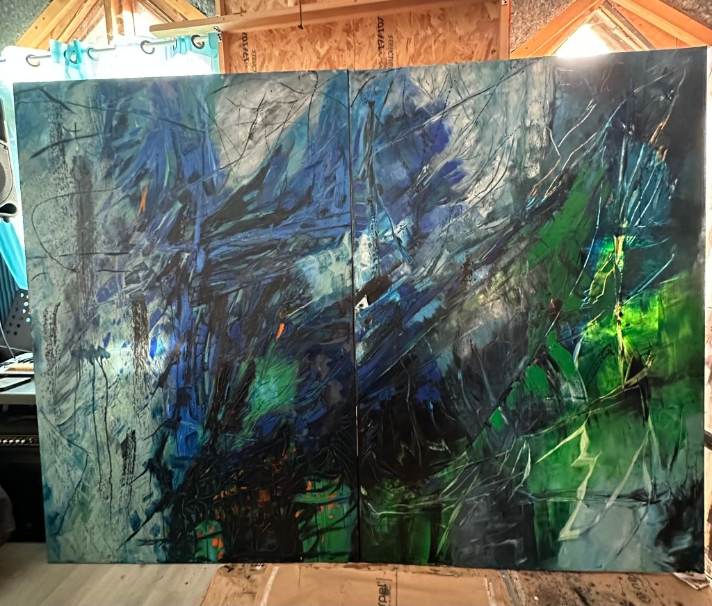 » Le soliloque de la lotte « . Diptyque. 2 panneaux de 195/130.