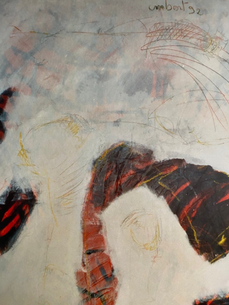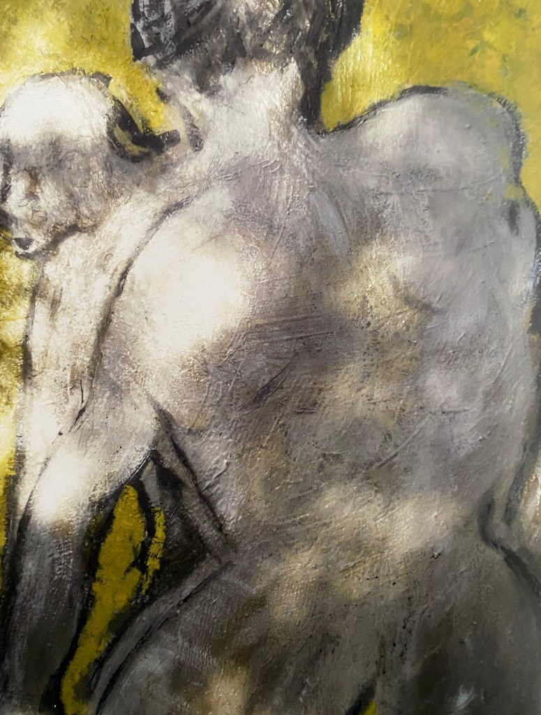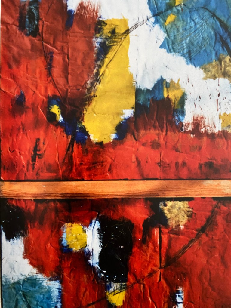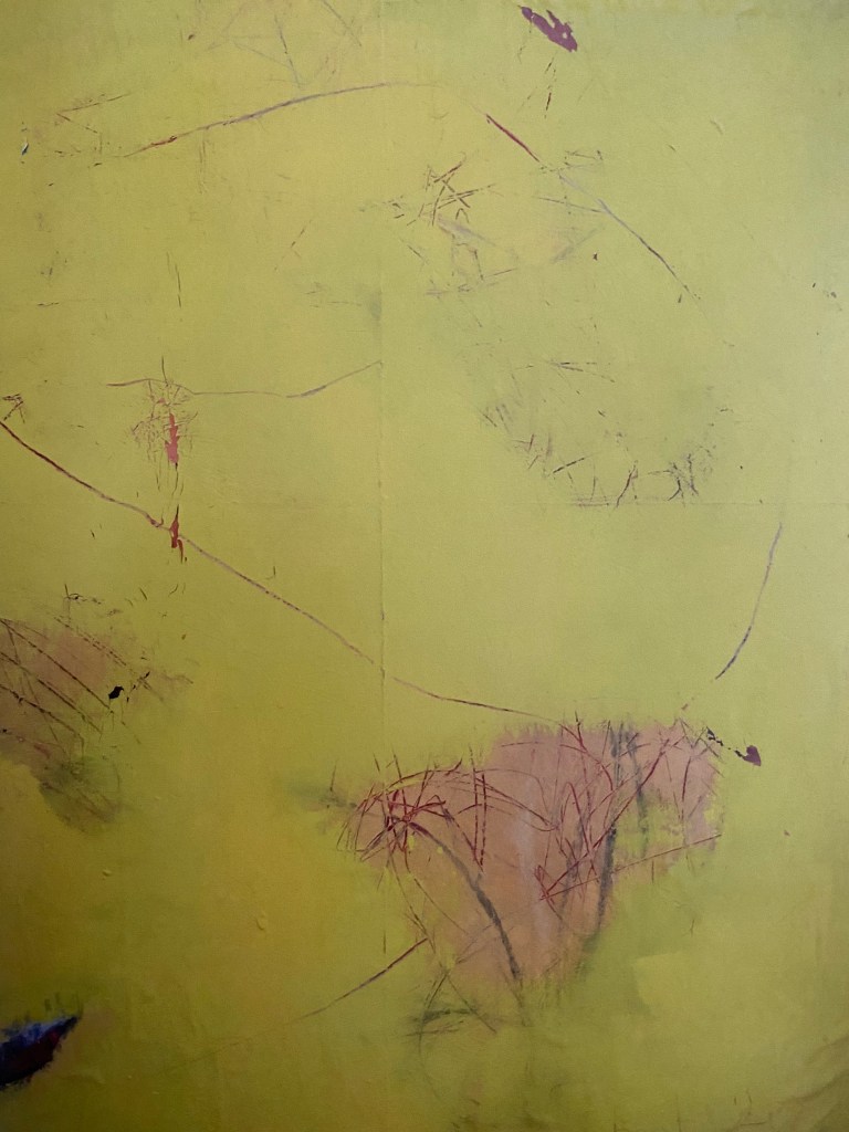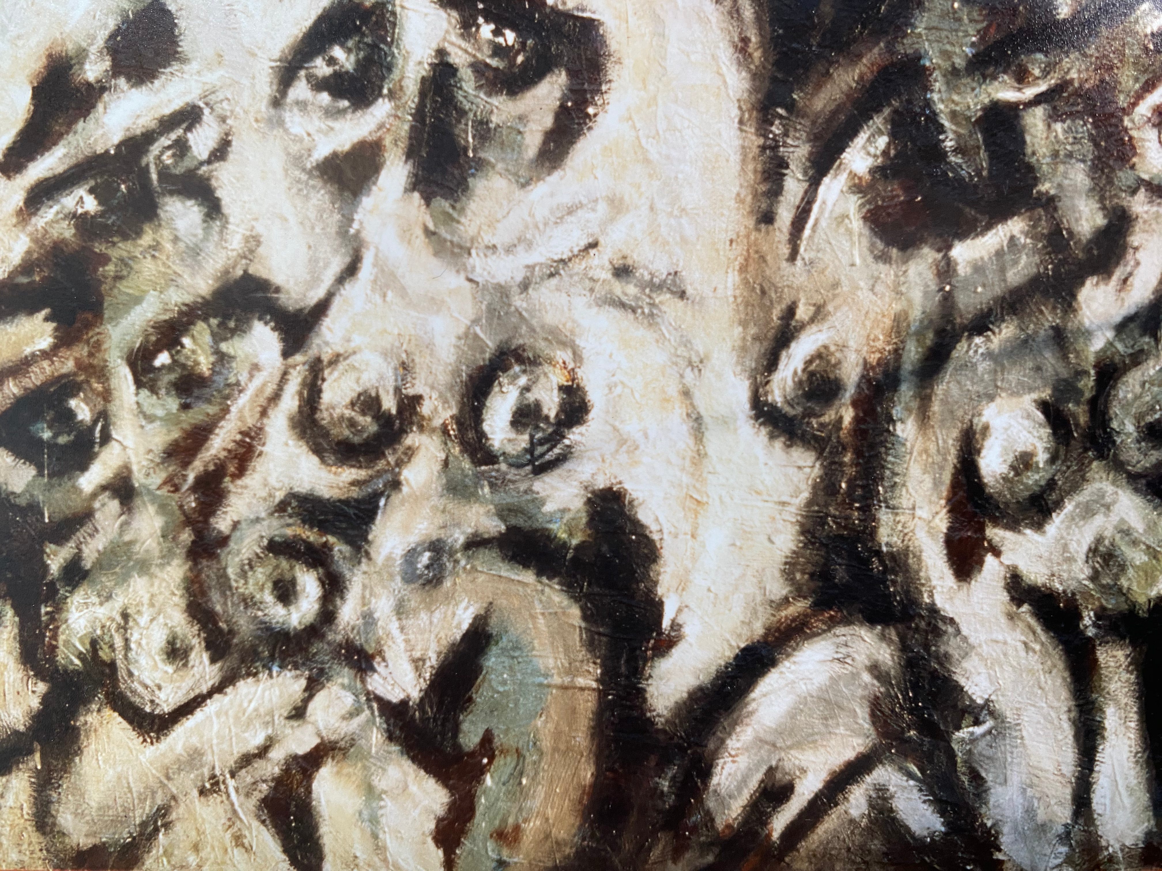 Peinture sur papier marouflé sur toile, huile, fusains , collages.